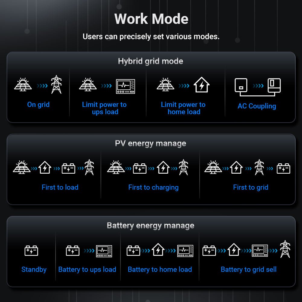- SunGoldPower Hybrid Solar Inverter Whole Home Backup 12KW 48V SGS12K18MAX